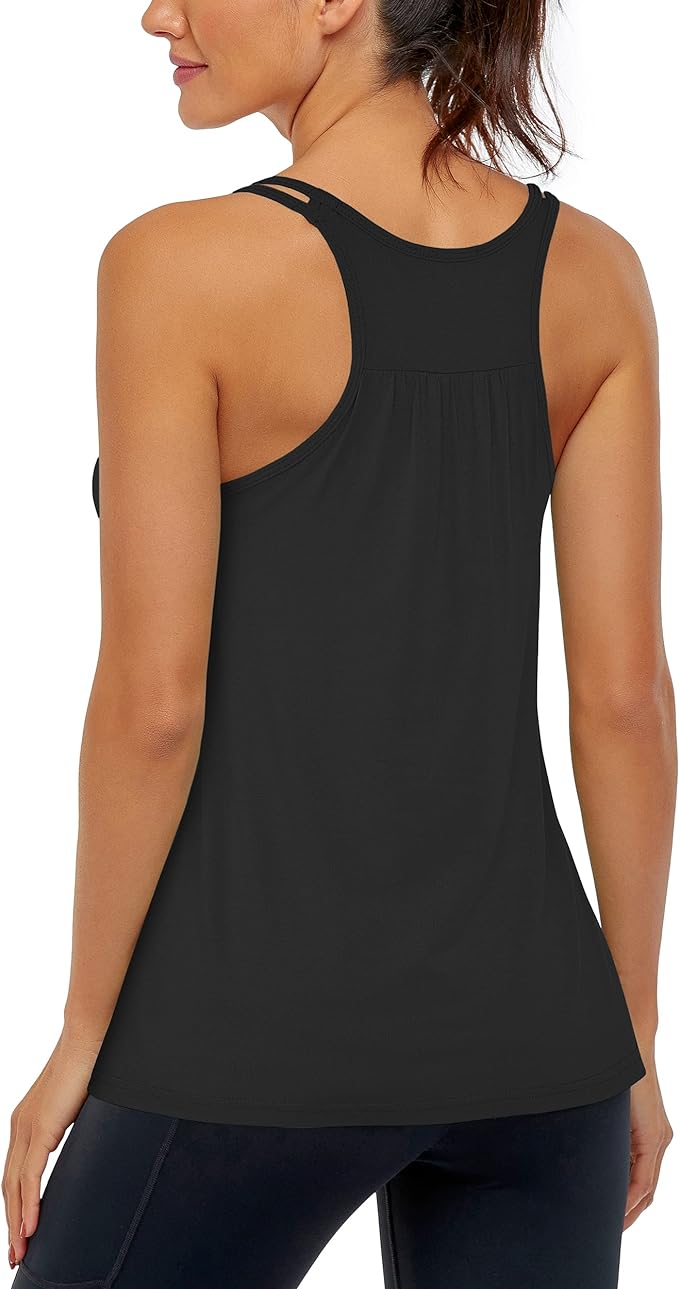 - √Double Straps: Yoga workout tank top with smooth spaghetti strap racerback design allows natural range of motion,easy to get on & off.
