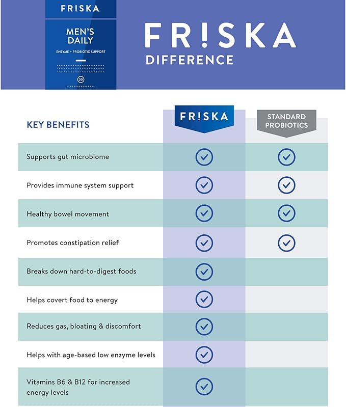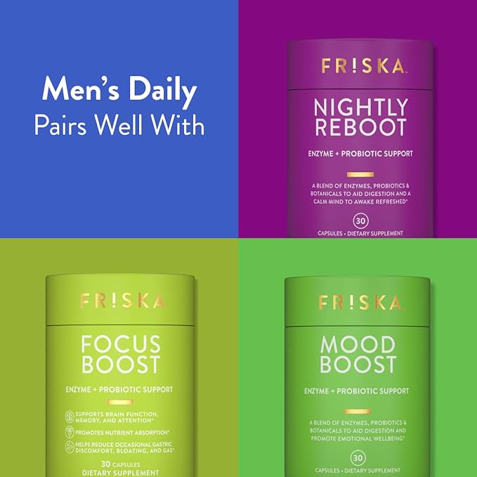 FRISKA Men’s Daily Digestive Enzyme and Probiotics Supplement, Natural Support for Male Digestive Health, Bloating, Gas, Indigestion Relief, Supports Gut Health, Lactase and B-Vitamins, 90 Capsules