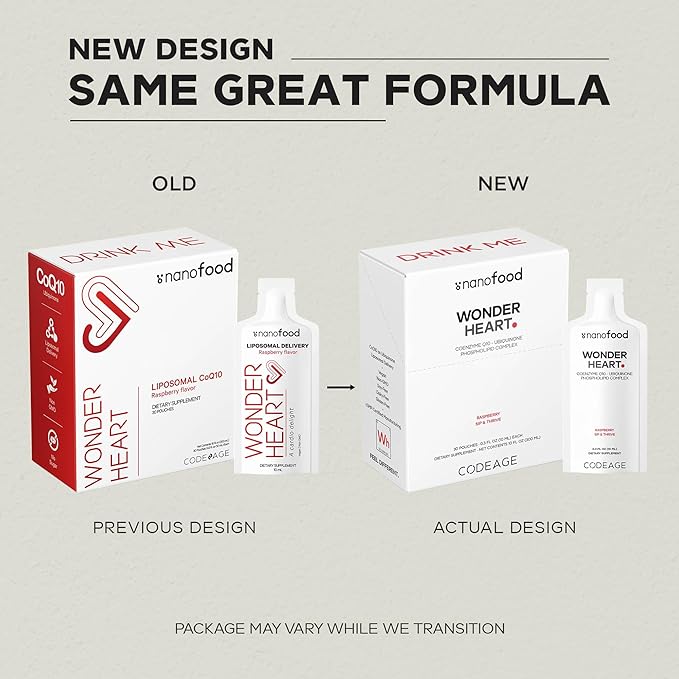 - Easy-to-Drink & Carry Pouches: Codeage Wonder Heart liposomal CoQ10 offers 30 individual and easy-to-take single serve packets by box.