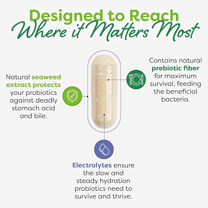 - Survives The Stomach: All probiotics need protection, food and water to survive; Each Probulin capsule includes prebiotic fiber and electrolytes for food and hydration, as well as a unique seaweed barrier that protects against stomach acid
