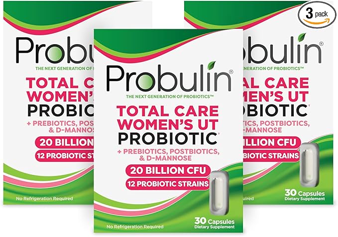 Probulin Total Care Women's Urinary Tract = Prebiotics + Probiotics + Postbiotics to Support Healthy Vaginal Microbiome - 20 Billion CFU - 12 Strains - 30 Vegan Caps (Pack of 3)