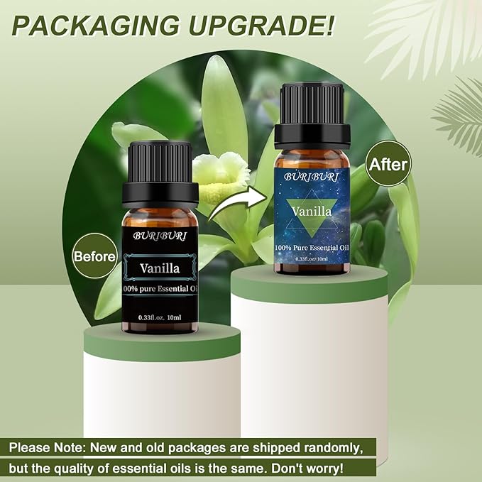 - Packing Includes: 10ml Vanilla Essential Oil x1. With no adulterants or dilution, 100% pure. BURIBURI vanilla oil is bottled in a durable amber glass bottle.