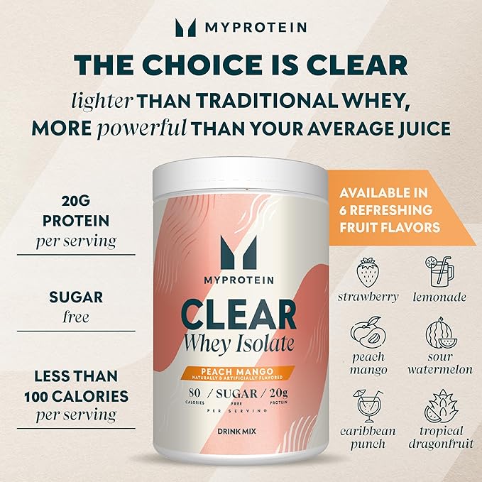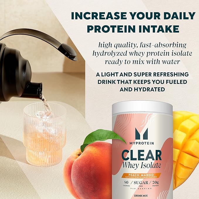Myprotein Clear Whey Isolate Protein Powder, 1.1 Lb (20 Servings) Peach Mango, 20g Protein per Serving, Naturally Flavored Drink Mix, Daily Protein Intake for Superior Performance