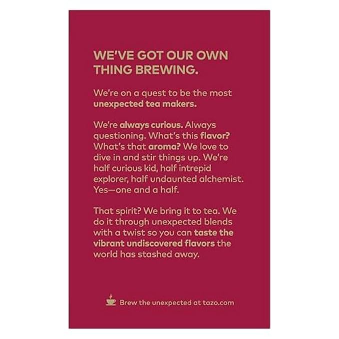 - TRUSTED COMPANY: TAZO Teas are produced without genetic engineering, meeting the Non-GMO Project Standard. Ingredients are expertly sourced giving a taste for you to savor