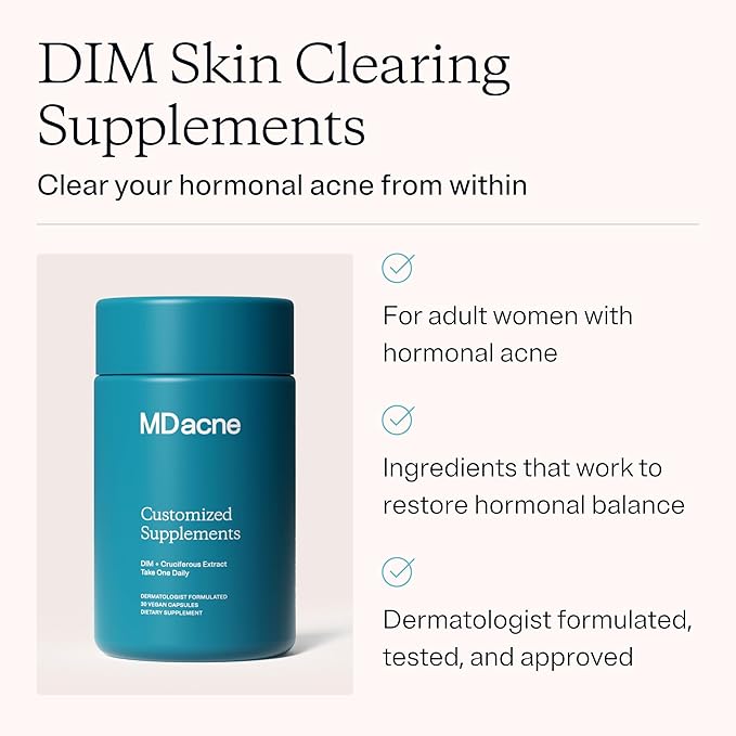 - MDacne DIM SKIN CLEARING SUPPLEMENTS: They say beauty comes from within. And hey, so does great skin, which is why we've created this groundbreaking DIM supplement. Specially formulated for women with adult hormonal acne, our DIM supplements work from the inside out to support your topical acne treatment. 30-day supply (30 capsules).