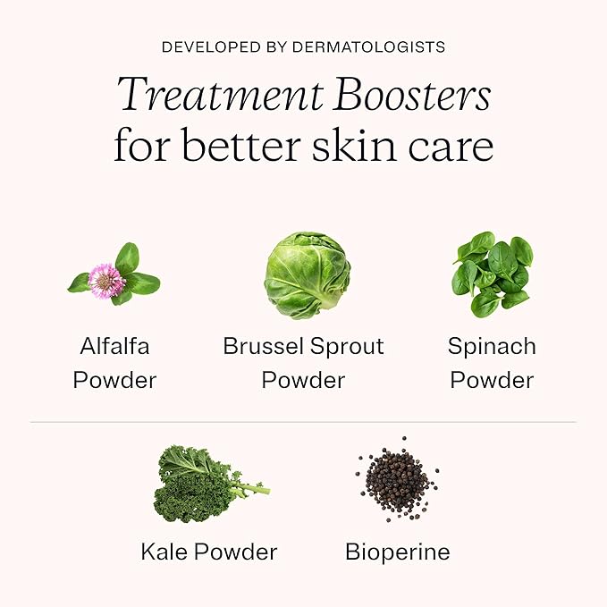- OTHER KEY INGREDIENTS: Spinach Powder is believed to reduce excess sebum secretion while Kale Powder is known to help improve clogged pores and assist in skin cell regeneration. Alfalfa Powder is rich in antioxidants and Brussel Sprout Powder is believed to support the immune system. Bioperine is a black pepper extract that allows the body to absorb DIM and other nutrients better.