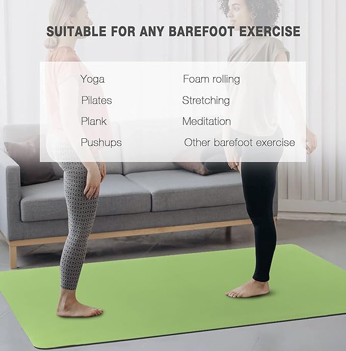 - DIMENSIONS: 6'x4'x6mm. This big yoga mat is double the standard-size, which is large enough for you to change directions without falling off the mat. Transforming your space into a perfect workout area.