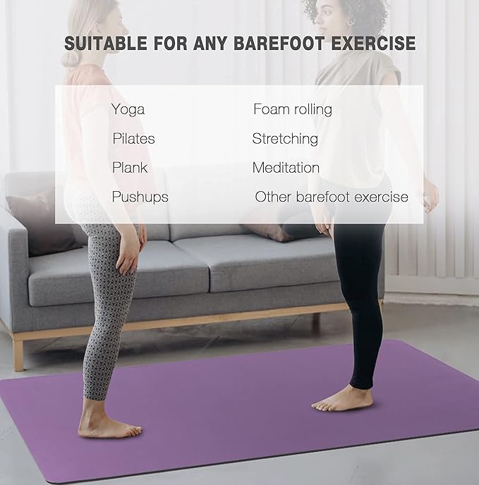 - DIMENSIONS: 6'x4'x6mm. This big yoga mat is double the standard-size, which is large enough for you to change directions without falling off the mat. Transforming your space into a perfect workout area.
