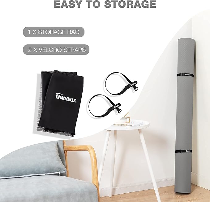 - EASY TO STORAGE - This spacious yoga mat can be placed in any corner of your room with the included 2 Velcro Straps and a Storage Bag. (If your mat damaged or accessories missing, please contact us immediately, we will give you a satisfactory answer)