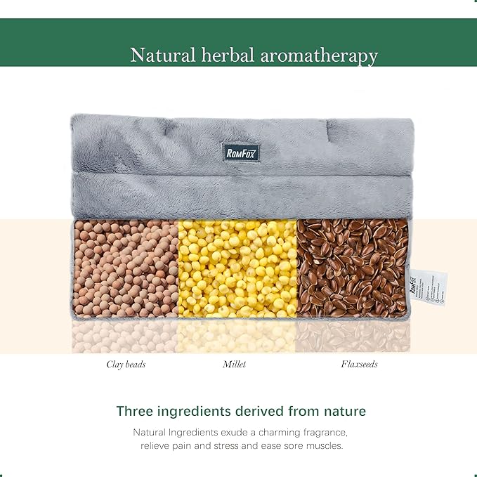 Romfox Microwavable Heating Pad for Pain Relief, Moist Heat for Menstrual Cramps, Muscles, Joints, Back, Neck and Shoulders, Heat Compress Pillow, for Both Hot and Cold Therapy (Grey - Unscented)