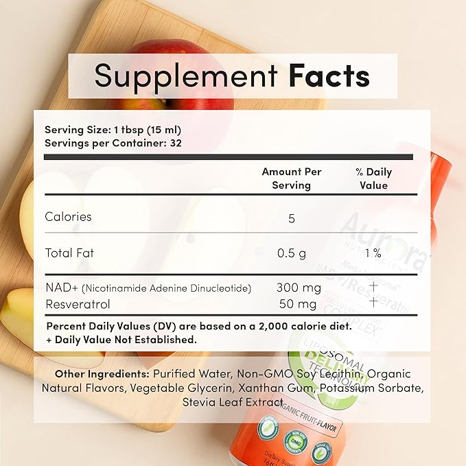 - PREMIUM LIPOSOMAL NAD+ FORMULA – This liquid supplement combines NAD+ (Nicotinamide Adenine Dinucleotide) with Resveratrol in a liposomal format for consistency and stability, supporting normal cellular functions and energy metabolism as part of overall wellness.*