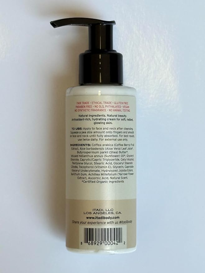 ITADI Organic Natural Daily Face Moisturizer Cream | Coffee Berry, Aloe Vera & Shea Butter Infused Hydration | Soothing for Dry Skin | Lightweight Face Cream With Vitamins + Aloe Vera - 4 fl oz
