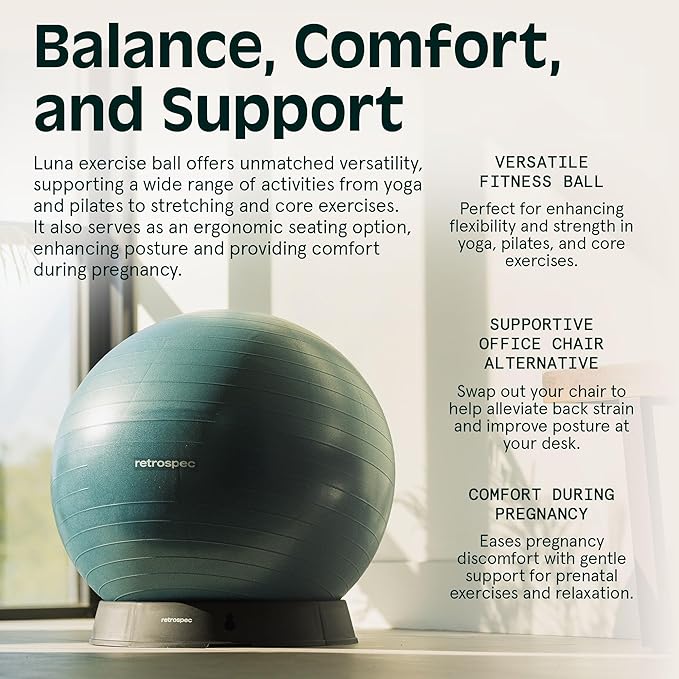 Retrospec Luna Exercise Ball with Pump - Anti-Burst Fitness Equipment for Yoga, Core Training & Stability - Home Gym Swiss Ball for Office & Pregnancy