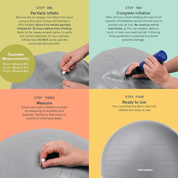 Retrospec Luna Exercise Ball with Pump - Anti-Burst Fitness Equipment for Yoga, Core Training & Stability - Home Gym Swiss Ball for Office & Pregnancy