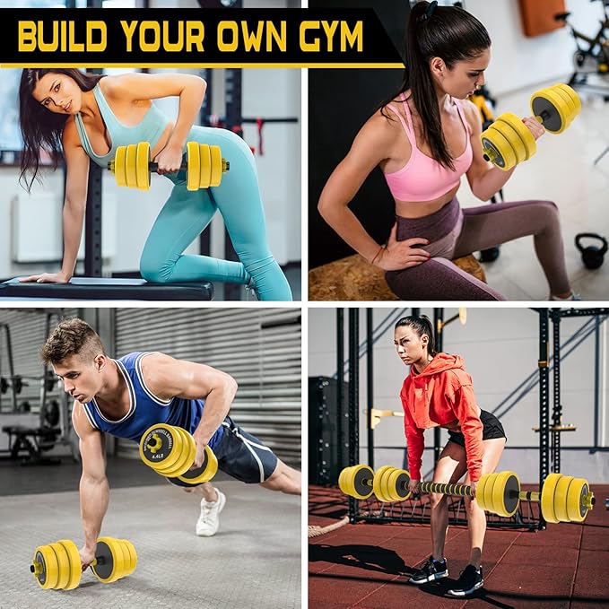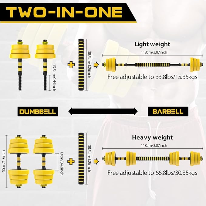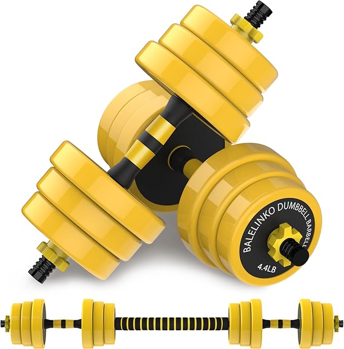 - 2-in-1 Adjustable Weight Training Equipment Set - Elevate your workout routine with our versatile 2-in-1 Dumbbell Barbell Weight Set. This set includes 12 weight plates: 4 x 4.4 lb, 4 x 5.5 lb, and 4 x 6.05 lb, giving you the flexibility to customize your weights. Easily switch between dumbbells and a barbell using connecting rods. Say goodbye to cluttered workout spaces with our all-in-one adjustable dumbbell set, making it the perfect weight training equipment solution for your home gym.