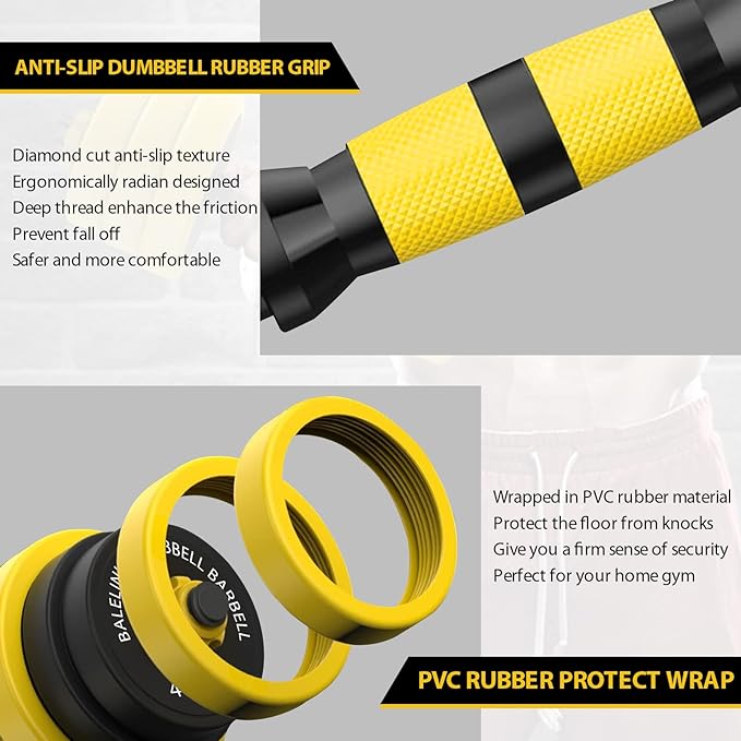 - Perfect for Weight Training Equipment - Transform your workouts with our Adjustable Dumbbell Set, offering a weight range from 1 lb to 33 lb for each dumbbell. Easily adjust the weights in increments of 4.4 lb, 5.5 lb, or 6.05 lb to suit your preferences. Our adjustable dumbbell set features a non-slip rubber skid grip, ensuring your safety during exercise. The anti-slip rubber handle enhances friction, providing a safer and more comfortable grip for your weight training sessions.