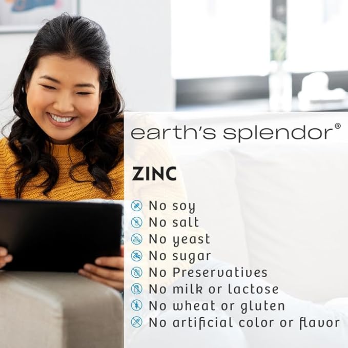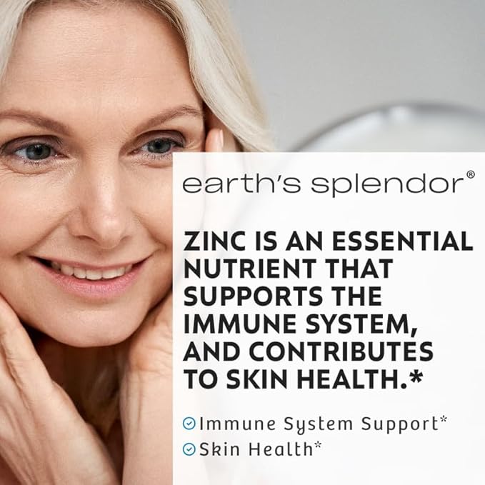 - Earth's Splendor Zinc 50 mg – Supports immune system health and plays a key role in maintaining healthy skin, and overall well-being.*