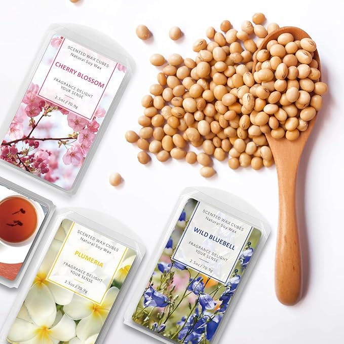 - Wax Melts Scented: Soy wax are made from creamy soybean wax that melts with ease – Unlike most other soy wax melts out there, these soy wax cubes don’t leave any residue behind. Soy wax burns cleaner and cooler, and it is even washable with just soap and warm water