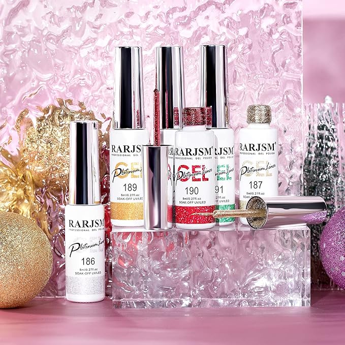 - PLATIUM 6 CLASSICAL COLOR:This nail art gel set include 6 classical colors (silver,gold,black,red,green,pink)with 8ml/0.27fl oz per bottle capacity.Different colors can meet your different nail art design need.Suitable for all season spring autumn fall winter and special days like Thanksgiving Day,Halloween,Christmas Day etc