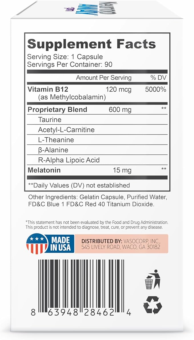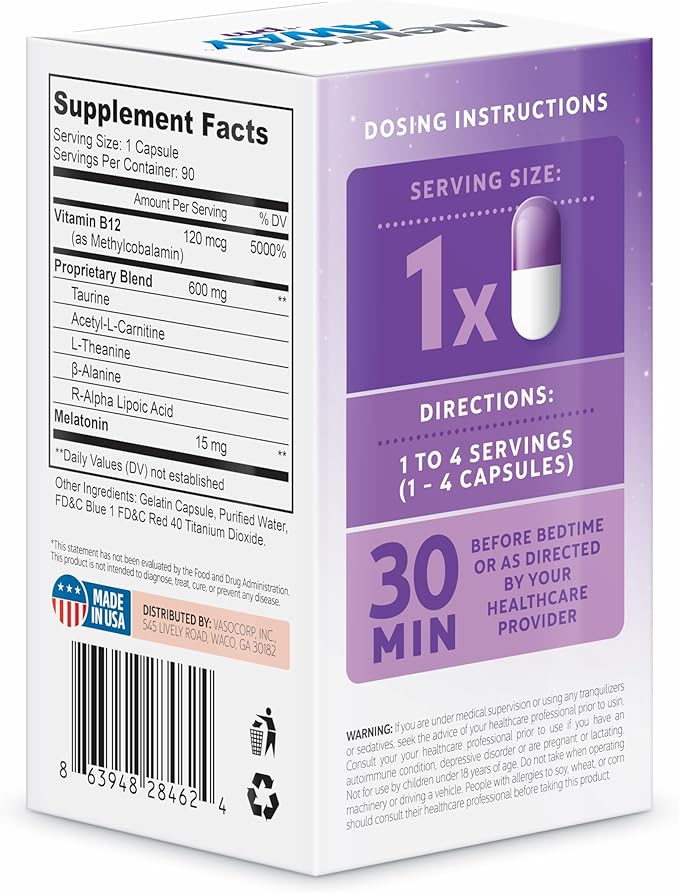 - Restful Sleep with NeuropAWAY PM: Containing a patented formula featuring Taurine, Melatonin, L-Theanine, Acetyl-L-Carnitine, B-Alanine, R-Alpha Lipoic Acid, and Methylcobalamin (Vitamin B12). With NeuropAWAY PM, enjoy deeper and more rejuvenating sleep for a refreshed and renewed morning.