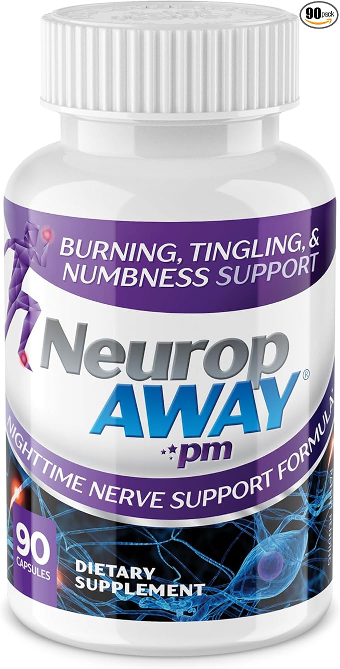NeuropAWAY Nerve Support PM, with R-Alpha Lipoic Acid to Help Provide Nerve Relief in as Little as 5 Days, Acetyl-L-Carnitine, Theanine, Melatonin, and Methylcobalamin, 90 Capsules