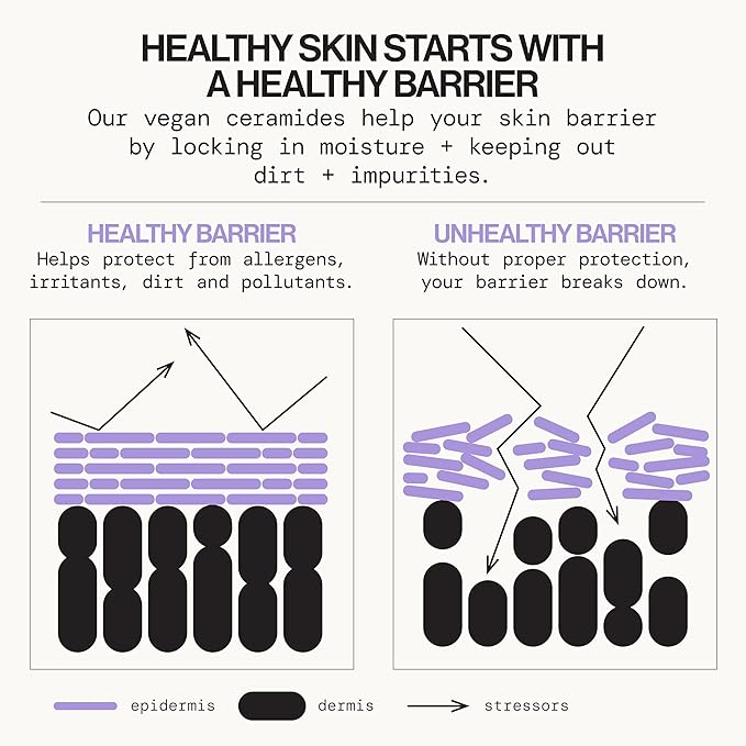 - REINFORCES SKIN’S MOISTURE BARRIER – Give compromised skin the support it needs. This daily face cream is packed with vegan ceramides (plant-derived lipids) that mimic your skin’s natural barrier to seal in moisture and block irritants. It actively repairs and strengthens a weakened barrier, alleviating dryness, flakiness, and sensitivity. The result is skin that feels stronger, healthier and more resilient against damage.
