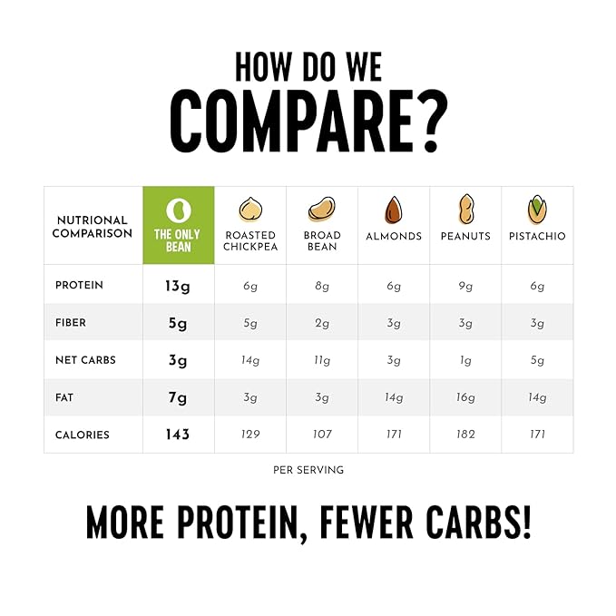 - LOW-CARB & KETO FRIENDLY SNACK: Enjoy a small handful or the whole bag at once! With only 3 Net Carbs per serving, these beans are a guilt-free keto food and a great protein chip alternative, too! It's perfect as an office snack, post-workout, or even as a healthy diabetic snack!