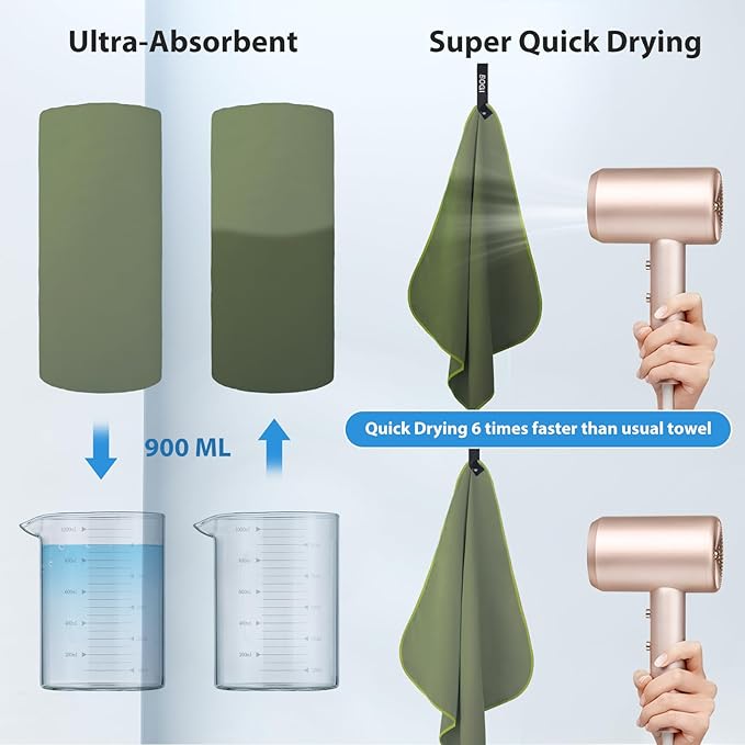 - Lightweight, Compact & Portable: Space saving and without the bulk. Our microfiber towel for sports is small in the pouch, but big in the towel! Come with a carabiner for easy to carry. Gift pouch is also suitable for storage phones, sunglasses, swimming cap, etc. The fast dry towel is perfect to use while exercising or to simply dry up your face, neck or hand. The lightweight towel quick dry is suitable for hair drying, cleaning cloth, wiping dishes and as a beach towel or a gym towel.
