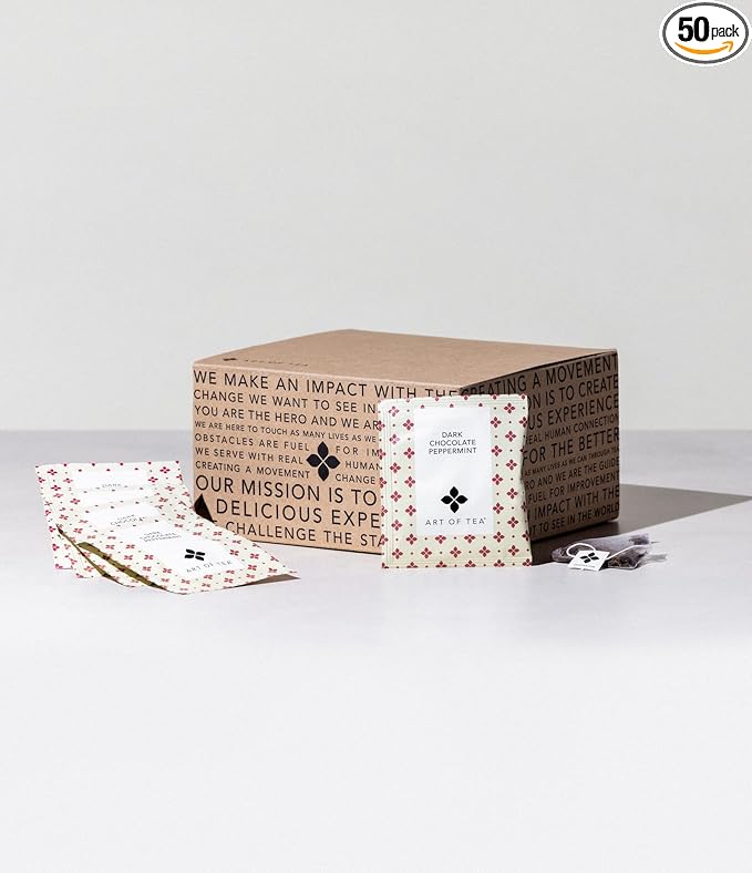 - DELICIOUS EXPERIENCE – This Art of Tea Bulk pack includes 50 pyramid sachets of Dark Chocolate Peppermint dessert Tea. Do you crave the tastes of sweet chocolate and bold mints year-round? If so, do we have the chocolate tea bags for you! Our Dark Chocolate Peppermint will make you feel like you’re sitting in front of a log fire cuddling up for a great night.