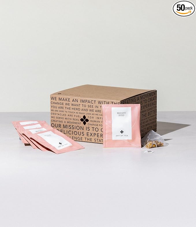 - DELICIOUS EXPERIENCE – This Art of Tea Bulk pack includes 50 pyramid tea sachets of Bright Eyed Tea. An invigorating blend of turmeric, ginger, cinnamon, and other fragrant spices, this loose-leaf blend draws from Ayurvedic principles to energize and awaken your mind and body, all without caffeine! This autumnal tisane brews to a beautiful copper hue and can be enjoyed at any time of day.