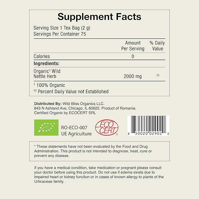 - PURE ORGANIC NETTLE LEAF; Avoid harmful agricultural chemicals in your tea; Wild Bliss tea is free from highly processed 'natural' flavors, additives, or preservatives
