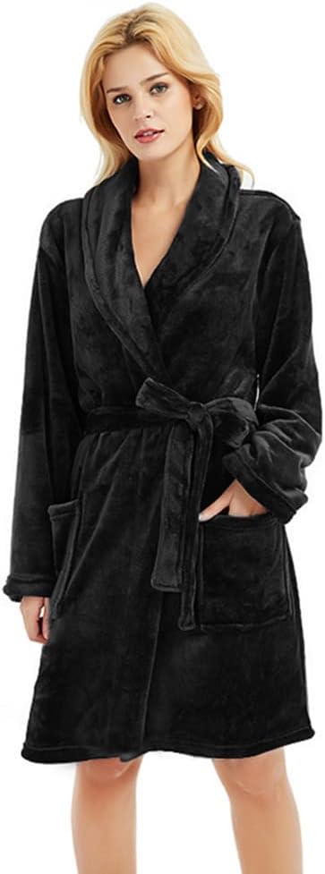 • ❤Classy & Elegant : Our brand new ultra comfortable and warm women robe collection offers a variety of patterns and styles for your choice. The knee length design of the fleece robe accentuates your silhouette and presents a classy and elegant look as a whole, which perfectly complements your precious wardrobe. The luxurious fleece bathrobe also offers you immediate warmth retention when you get out of the shower.