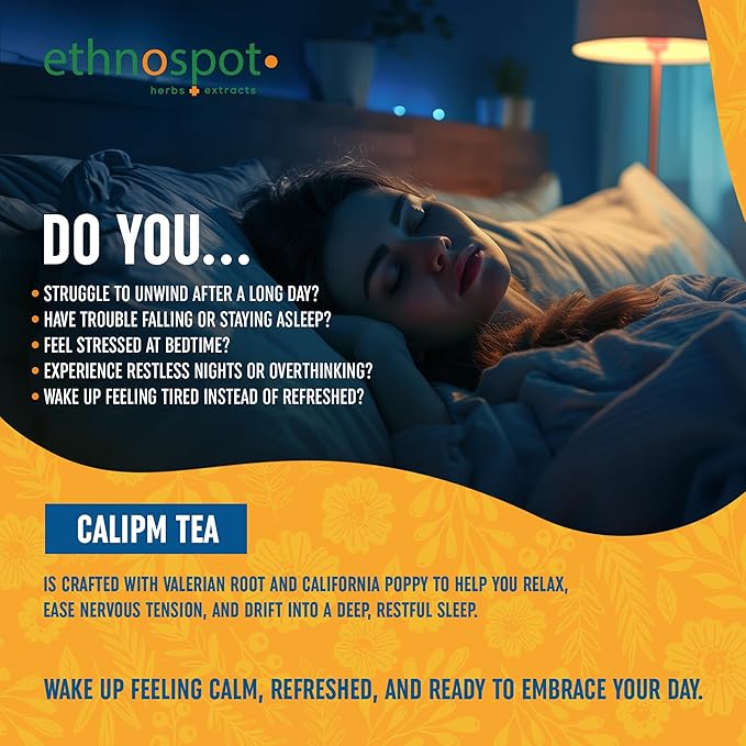 - Herbal Blend for Restful Sleep: CaliPM Tea blends California Poppy and Valerian Root, two renowned herbs used traditionally to promote deep, restful sleep and relaxation. Each 2-gram tea bag delivers a potent formula to help ease physical tension, calm the mind, and support a peaceful night’s rest—all without any fillers, caffeine, or artificial additives.