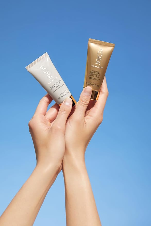 - Radiant Skin Ritual: KORA Organics Turmeric Brightening & Exfoliating Mask in a travel-size offers an invigorating face mask skin care experience; formulated to revitalize and smooth while purifying pores, it enhances your skin's natural radiance