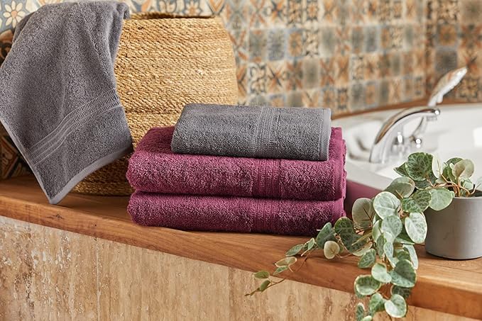 HOMELOVER 4 Piece Towel Set - 100% Organic Cotton 2 Bath Towels & 2 Hand Towels - 500 GSM, Hotel Quality, Soft, Highly Absorbent & Quick Drying Wash Towels for Kitchen & Bathroom (Plum Purple)