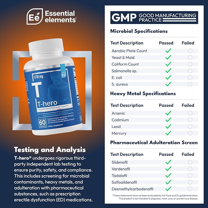 - Maintain T Health: Essential elements T-hero is skillfully designed to maintain healthy test levels already within the normal range, aid your workout performance, and maintain optimal male health.*