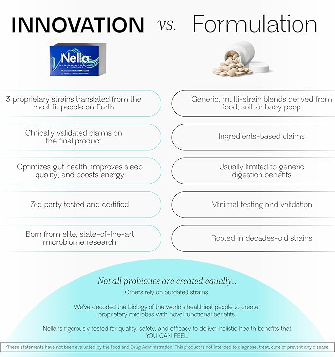 - Nella is gut health probiotics revolutionized with a unique combination of 3 Lactobacillus strains designed to holistically improve not just gut health but overall health