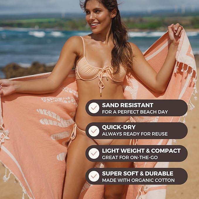 - The Only Towel You Need: Our oversized (37x67) Turkish beach towel transforms into a cozy throw, picnic blanket, scarf, stylish sarong, or boho tapestry—perfect for travel, beach days, or relaxing at home.