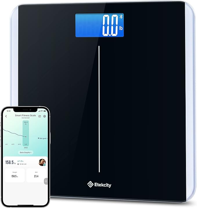 Etekcity Smart Scale for Body Weight and BMI, Bathroom Digital Electronic Weighing Scale for People, Bluetooth Free VeSync APP Connection, Rounded Corner, Accurate to 0.1lb/0.05kg, 400 lbs, Black