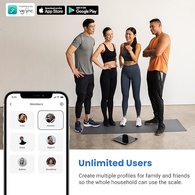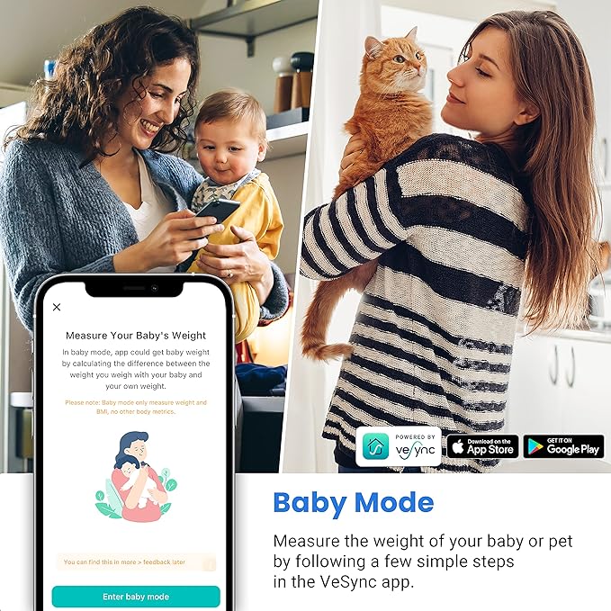 - One Scale for the Whole Family: Use Baby Mode to conveniently weigh and track your baby or pet's growth. With unlimited user profiles for family and friends, this scale is designed with everyone in mind.