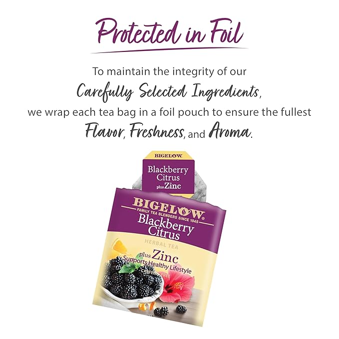 Bigelow Tea Blackberry Citrus Plus Zinc Herbal Tea, Caffeine Free Tea with Blackberry, 18 Count Box (Pack of 6), 108 Total Tea Bags