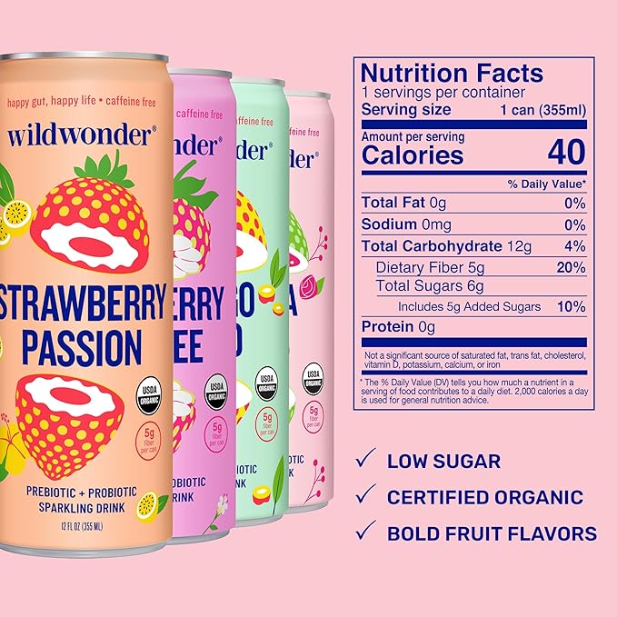 - MODERN TASTE MEETS HERBAL WISDOM: Wildwonder is a delightful sparkling drink that combines whimsical flavors with eastern herbal wisdom and gut-healing superfoods; Made with real fruit and freshly brewed herbs; Clean, organic, non-GMO, and vegan