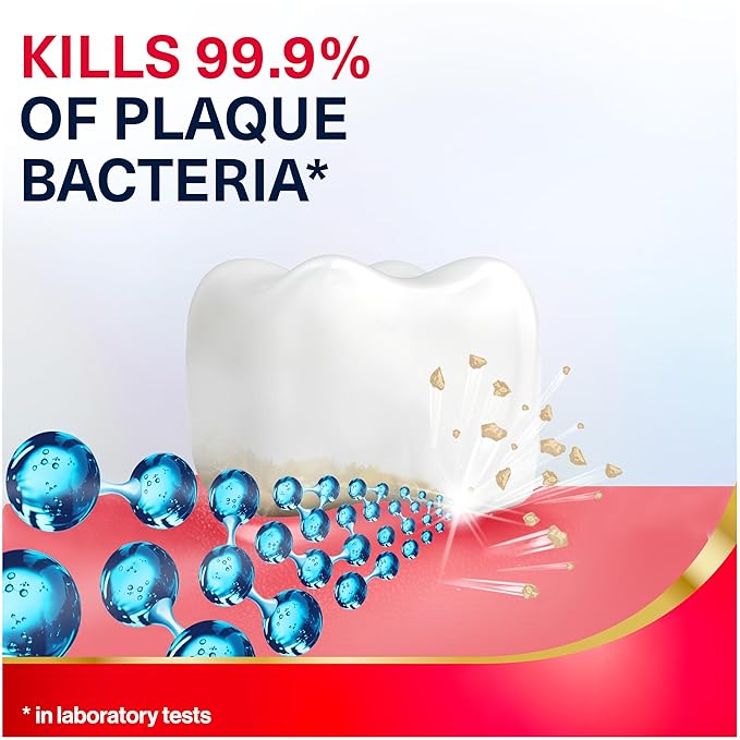 - Antibacterial mouthwash that kills 99.9 percent of plaque bacteria (1)