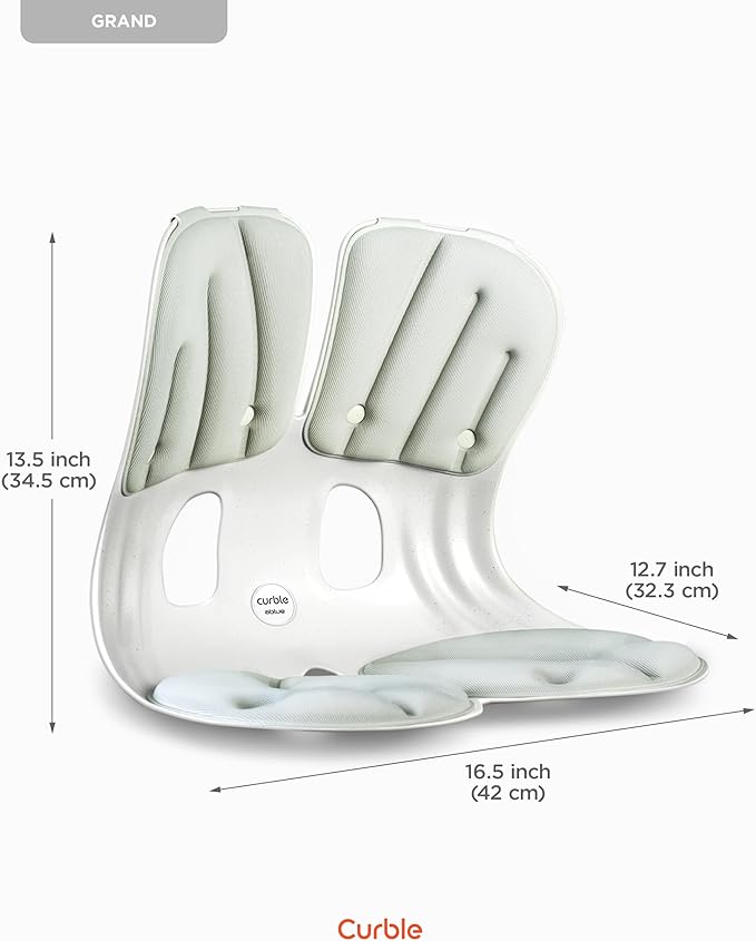 curble Grand(Extra Wide & Sturdy) – Ergonomic Back and Lumbar Support for Good Posture Correction and Back Pain Relief, Perfect for Office, Floor Seat and Work from Home, Patented (Grey)