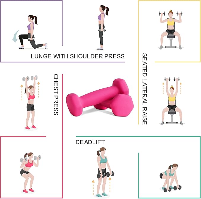 - NON-SLIP COMFORT GRIP: Featuring a soft neoprene coating, these dumbbells offer a comfortable and ergonomic grip that absorbs moisture, making them ideal for a wide range of indoor and outdoor exercises.