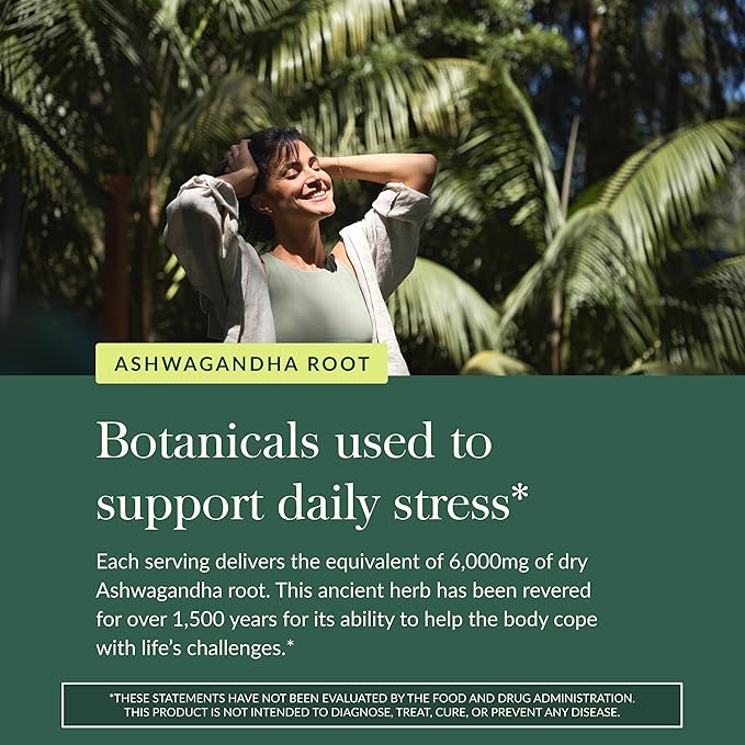- Each serving delivers the equivalent of 6 grams of Ashwagandha