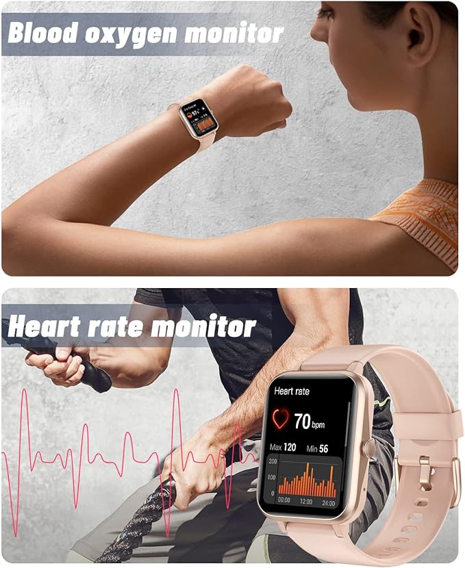 - 【Heart Rate/Blood Oxygen Monitor & Sleep Tracker】- This health tracker watch will auto monitor your heart rate and sleep quality all day. You can also use it to monitor your real-time blood oxygen saturation. By connecting the smartwatch to your phone, the app will provide you the detailed heart rate chart and comprehensive analysis of your sleep quality to help you stay active and stay healthy.