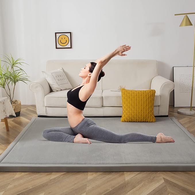 - Extra Thick Carpet: The filling adopts superior sponge with a thickness of 1.18 inch(3cm). Size: 59 by 78 inch. Large size has enough space for family activities. Solid grey floor carpet is also suitable for home decor, living room rugs, area rugs, bedroom mat etc.