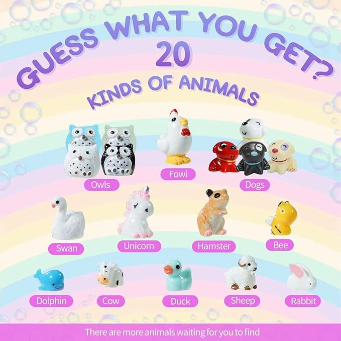 - With surprise toys inside: Each bath bomb has one animal inside, which really makes a lot of fun when our little kids take a bath! After enjoying 3-5 minutes colorant rich bubble home bath spa, our little kids could find the surprise animal toys in the tub. The most interesting thing is that toys inside is at random, which include owl,fowl,hamster,swan,unicorn,dog,bee,dolphin,cow,duck,sheep,rabit.Then our little kids could get more unexpected and different surprises during each bath time!