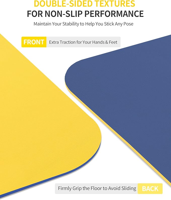 - Double-sided Non-slip Surfaces: sufficient grip brings a more connected feel to your practice; help you focus on your breath and postures without the distraction of slipping on the fitness mat; strong traction prevents the grounding mat from sliding or slipping on the floor, like the wood floor, tile floor, and cement floor
